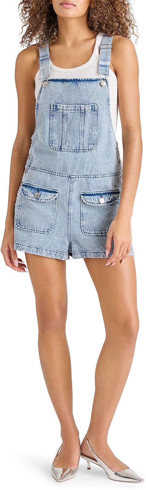 Steve Madden Kittie Shortall Cargo Mini Overall Romper, Womens, M, Acidwash Denim