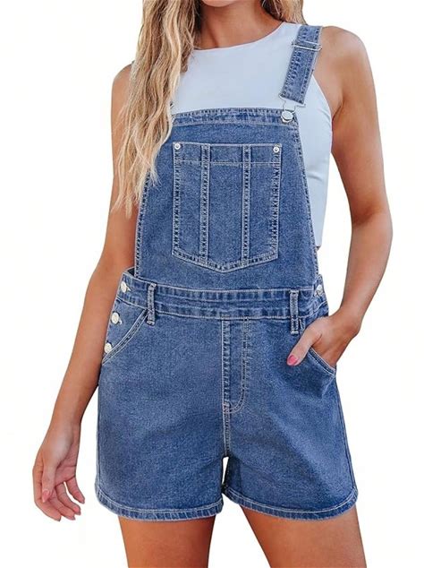 Jean Short Overalls Women Baggy Adjustable Straps Bib Stretchy Overall Jumpsuits Shortalls With Pockets,XX-Large