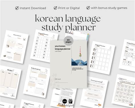 Learn Korean Starter Pack, Hangul Practice Worksheets, Study Planner, Vocabulary Sheets, Printable + Tablet-Friendly