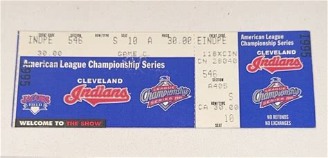 1995 MLB Playoff Alcs Game 5 Ticket Stub Indians Mariners Thome HR Hershiser Win. MLB. Blue. Baseball-MLB.