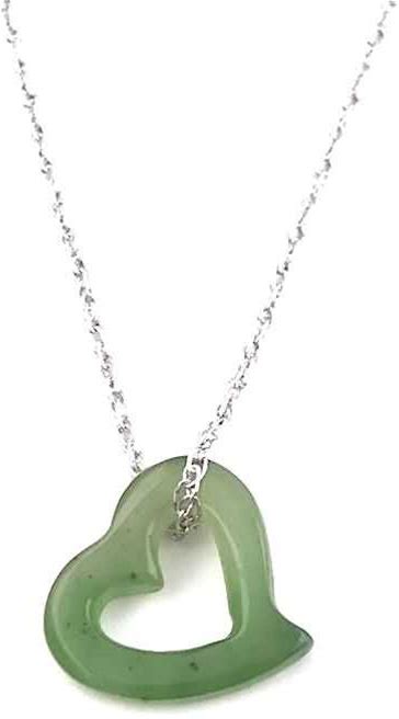 Womens Genuine Nephrite Jade Heart Pendant With Sterling Silver Bail (Multiple Sizes Available) 32mm