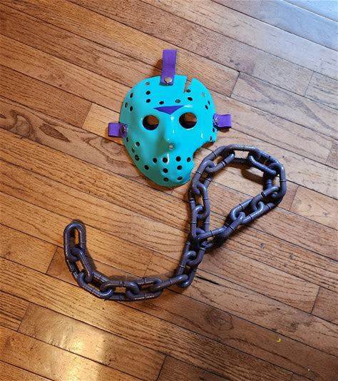 Friday The 13th Part 7 Halloween Costume Cosplay Jason Voorhees Mask & Chain. The Horror Crypt. Reproductions.