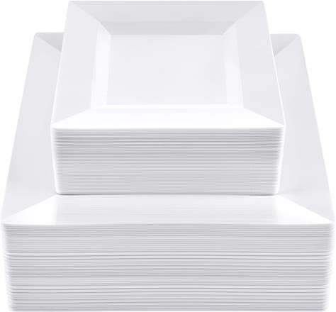 50-Pack Bagasse Square Dinner Plates 10" White With Wide Rim | Eco Friendly Disposable Sugarcane Party For Gatherings - Weddings, Events By Efavormart Party Shop