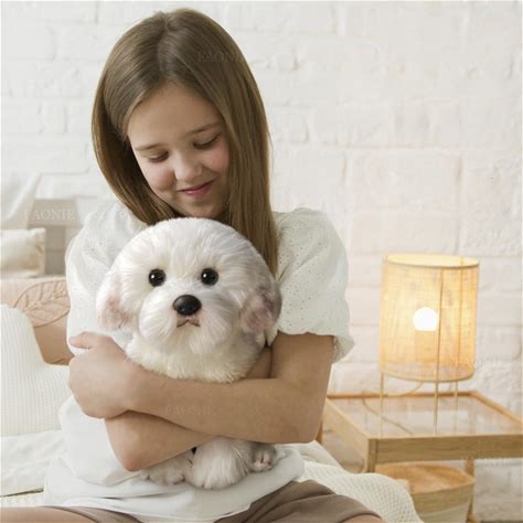 Mifebshe Realistic Plush Maltese Dog, Bichon Frise Puppy Plush Toy, Stuffed Doll For Boys & Girls, 28cm
