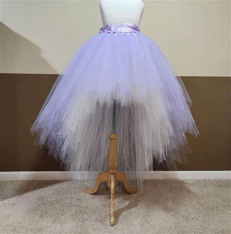 D06 Lavender Over Ivory/ High-Low Tutu (With Sewn In Satin LINING Hi - Lo Tulle Skirt33 Colors Available)