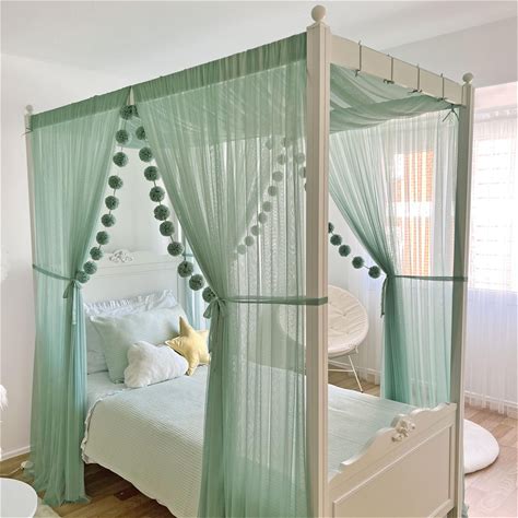 Sage Green Canopy Bed, Four Poster Bed,Square Canopy Bed, Montessori Bed Canopy, Canopy Bed Curtains, Twin Canopy Bed