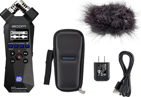 Zoom H1essential 2-Track 32-Bit Float Portable Audio Recorder Bundle With APH-1E With Hairy Windscreen, Padded Shell Case, AC Adapter, & USB C-Cable