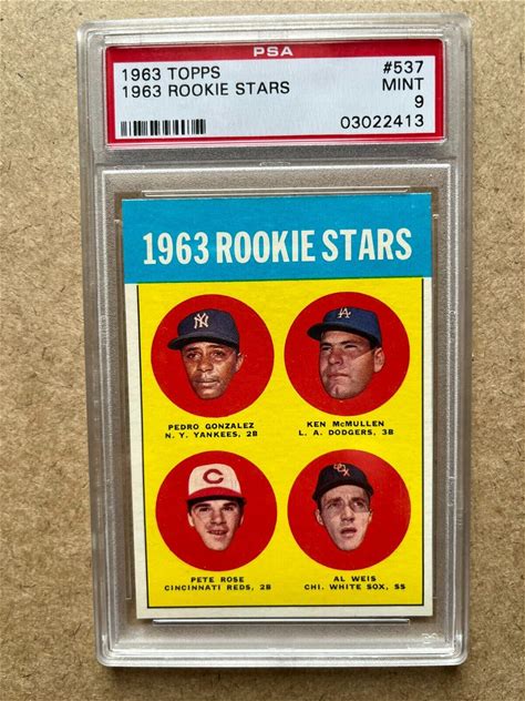 Original 1963 Topps Rookie 537 Pete Rose Reds Hof Psa 9 Mint Mlb 'Hit