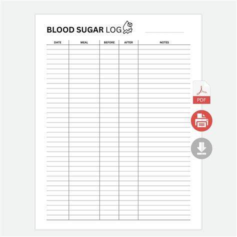 Diary Printable - Blood Sugar