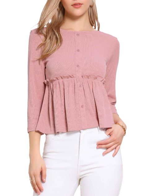 Allegra K Fall Blouse For Women's 2025 Peplum Crew Neck 3/4 Sleeve Ruffle Pullover Blouses