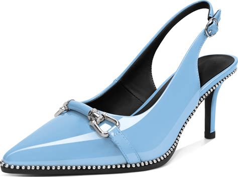 LACIKOSZ Women Heels Slingback Pointed Closed Toe Kitten Heel Sandals Slip On Stiletto 2.6 Inch Pumps Metal Buckle Patent Leather Evening Prom Party