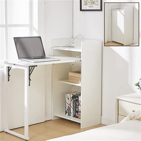 Zethvax Fold Out Desk With Storage And Built-In Outlet, Mid Century Foldable Desk For Small Spaces, Hidden Folding Table For Home Office Or Bedroom (