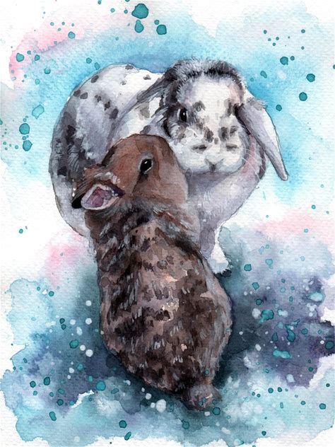 Hand-Painted Custom Multi Pet Portrait: Original Watercolor Bunnies Painting