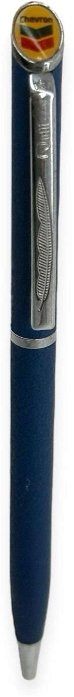 Vintage 1990S Quill Blue Matte Ballpoint Pen Chevron Gas Logo Advertising