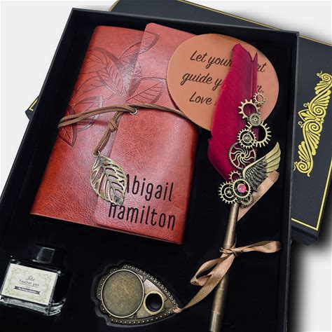 Personalized Feather Quill Pen Gift Set With Custom Journal