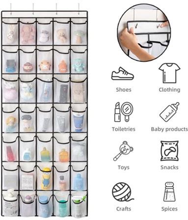 Homyfort 35 Large Pocket Over The Door Shoe Organizer, Extra Sturdy Oxford Fabric Hanging Shoe Rack For Door Closet, Wall Mesh Shoe Storage Holder For